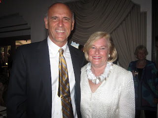 As the Greenfield Prize Director at the Hermitage, Patricia Caswell did a top-notch job pulling it all together. Joy Rogers was the dinner chair, with great help from Rebecca Donelson, and I don't think I have seen the Michael's On East ballroom look quite so lovely in a long time. It was truly a sea of blue reminiscent of the Greenfield Prize itself, which is a big wave. Blue up lights bathed the walls in cool, clear blue and blue lights rimmed the top of the columns. The centerpieces were also reminiscent of the sea with a big white shell filled with flowers and all sorts of sea-related items.